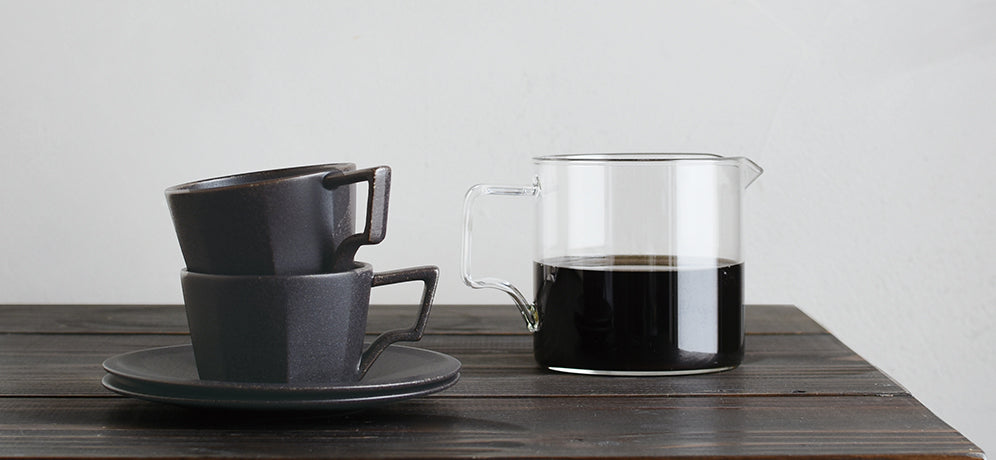 Designed based on an octagon, OCT features clean lines and beautiful contour. It is filled with subtle details that ensure comfort in brewing and drinking coffee. The rim of the brewer draws a large curve, creating a distinctive silhouette. The brewer can be held easily without a handle, and is designed so that placing and removing the paper filter is simple. The handle of the cup and jug look sharp yet is comfortable to hold, and the rim of the cup is thin yet smooth on the mouth. With elegant texture and form, they are perfect for displaying as interior items when not in use.